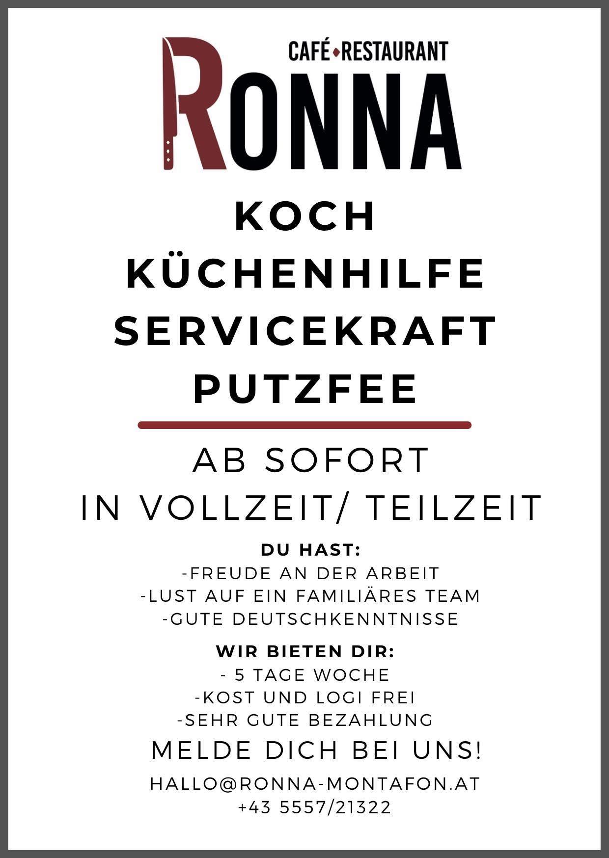Suche für kleines a la carte Restaurant in Gargellen im Montafon ab sofort eine Servicekraft (m/w) mit Inkasso! Kost&Logie frei! Wir sind ein kleines Lokal mit ca 40 Sitzplätzen mitten im Ort und haben uns auf Burger und BBQ spezialisiert genauso bieten wir aber auch traditionsgerichte an.